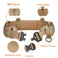 El cinturón táctico acolchado está diseñado para proporcionar soporte y comodidad en actividades al aire libre como combate, caza y paintball. Su estructura ajustable y bolsillo integrado lo hacen una herramienta esencial para cualquier entorno táctico.