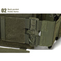 Integre este chaleco en su equipo táctico revisando las dimensiones y asegurando su compatibilidad con otros accesorios. Compruebe el ajuste antes de su uso.