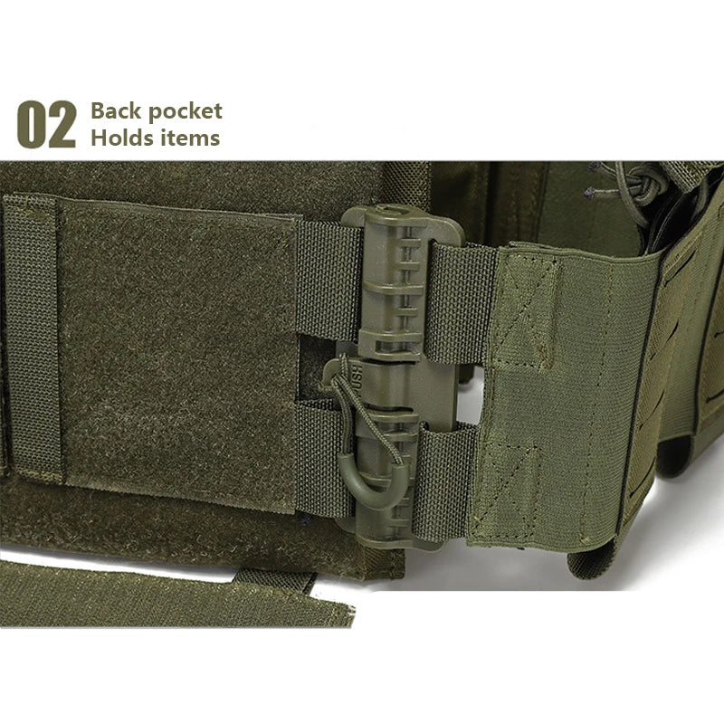 El chaleco táctico multifuncional está diseñado para ofrecer protección y funcionalidad en actividades al aire libre. Fabricado con tejido resistente, es ideal para entrenamiento táctico.